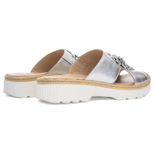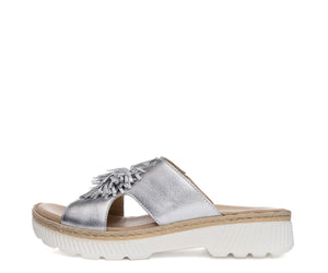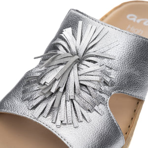 Cancun: Pom Pom Slide Sandal - Silver 12