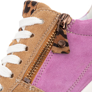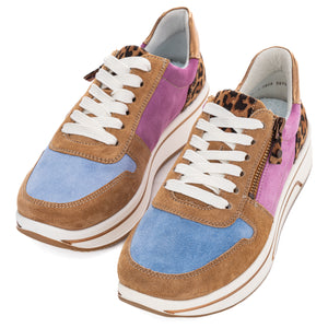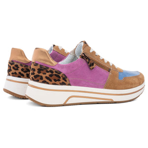 Color & Material: biscuit,azure blue & orchid suede w/leo print & whisky metallic