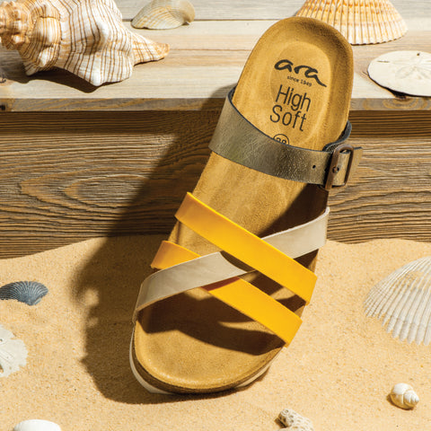 Slip into the Beth in yellow and bring on the sunshine! Slip-on design for convenience and style. Cushioned and contoured footbed and a cork midsole for excellent comfort. ara's HighSoft comfort technology ensures unmatched comfort.